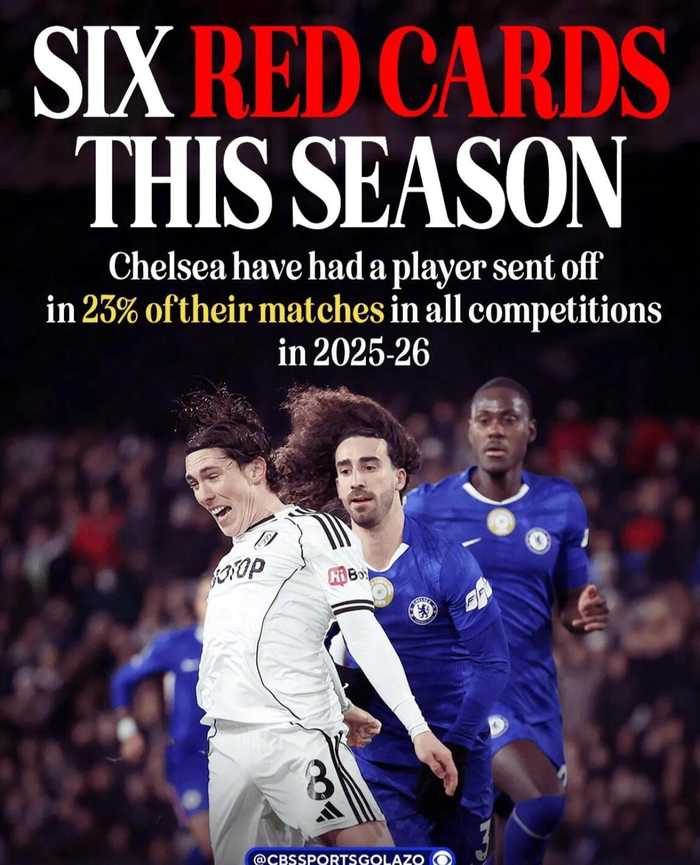 至此,切尔西球员本赛季已经在各项赛事里6次被罚下(英超5次,英超1次),且被罚下的6个人各不相同。